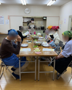 栄養の話から始まり、バランス良く上手に作るポイントまで教えて頂き、完成後は野菜たっぷりのお味噌汁と一緒に頂きました。