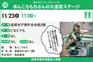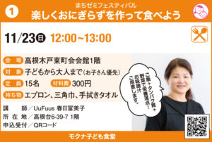 2025.11.15 まちゼミフェスティバル 今年もまちゼミに参加します 【そろばん教室】 数字ゲームやそろばんで遊ぼう 日時 11月22日(土) ①10時半~11時15分 ②14時半~15時15分 ご予約はこちらよりお願いします→ご予約フォーム 【まちゼミフェスティバル】 日時 11月23日(日) <ミニチュアホースのPちゃんと遊ぼう> 10時~11時 <あんころもちさんの大道芸ステージ> 11時~ <楽しくおにぎらずを作って食べよう> 12時~13時 ご予約はこちらよりお願いします→ご予約フォーム Tweet Share Hatena 高根木戸マルシェ 楽しくおにぎらずを作ろう!開催報告